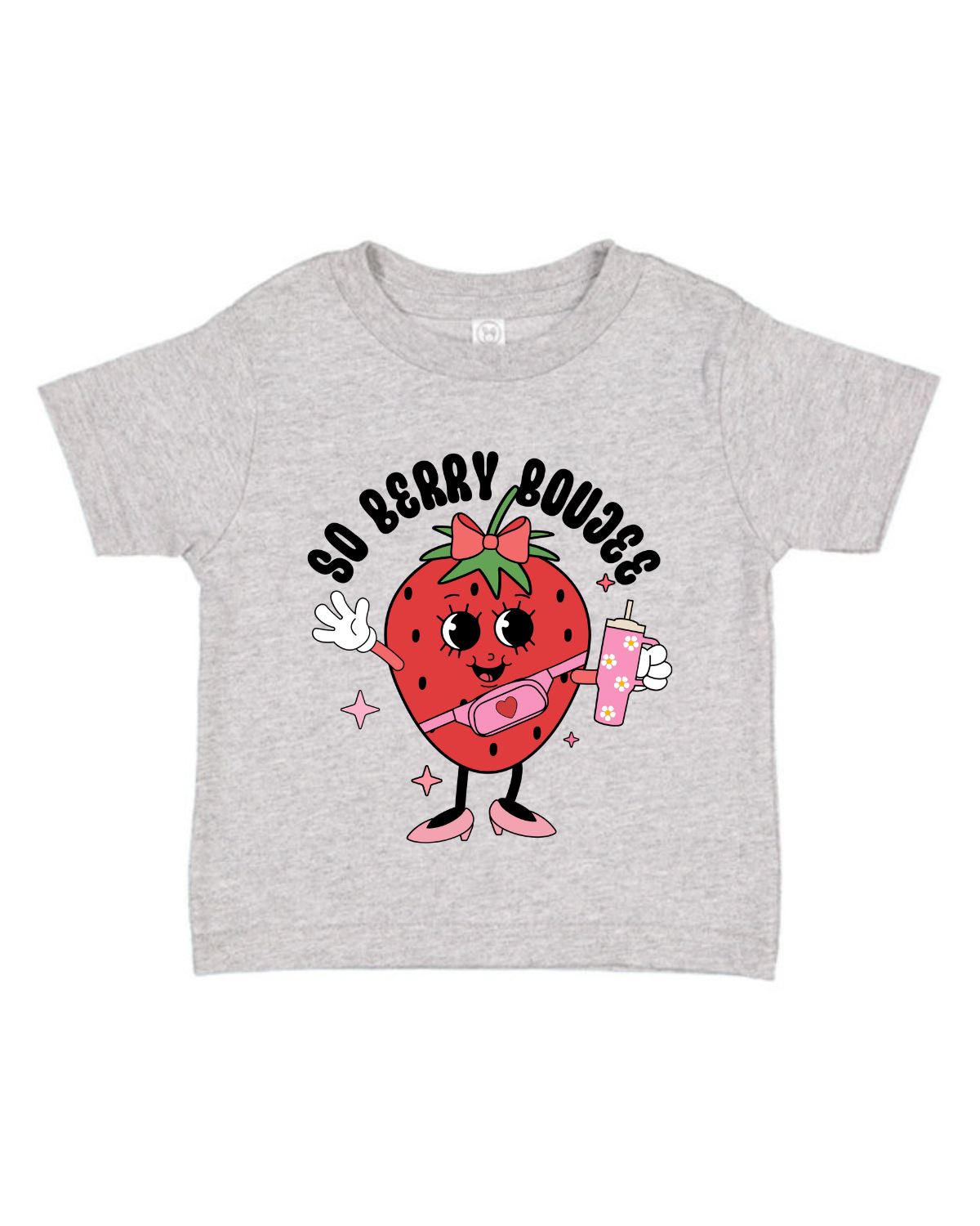Let your little one shine in the "So Berry Boujee" Toddler T-Shirt! This adorable tee features a cute strawberry character with a stylish bow and chic accessories, making it perfect for your fashionable toddler. Made from soft, breathable fabric, this t-shirt ensures comfort all day long, whether at playdates, family outings, or casual events.