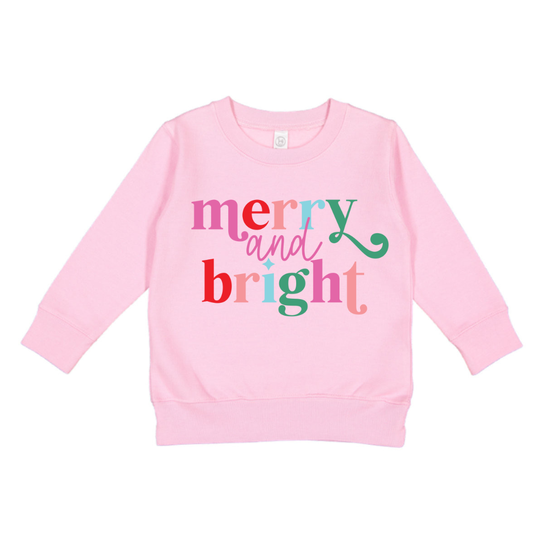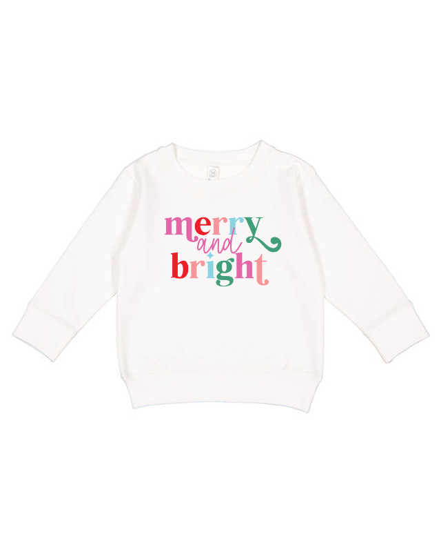 Celebrate the season in style with this charming "Merry and Bright" kids’ sweatshirt! Featuring a colorful and cheerful typography design, this cozy gray sweatshirt adds a playful touch to your child’s holiday wardrobe.