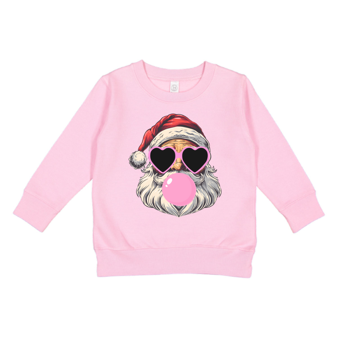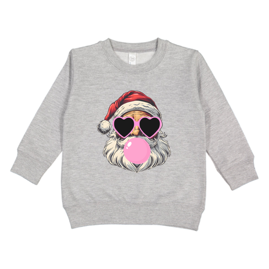Bring holiday cheer with a twist of style! This adorable sweatshirt features a fun, modern Santa Claus design, complete with heart-shaped sunglasses and a bubblegum pop for an extra dose of cool.